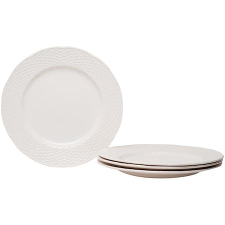 This set is perfect for your home Has a classic basket weave design outstanding for all your entertaining needs Features. Nantucket White Dinner Plates. Microwave Warm Oven and Dishwasher Safe. Made in Malaysia. Set of 4Specifications. Color White. Material Stoneware Pin Fired. Size 1125 Dia x 125 H. Weight 8 lbs