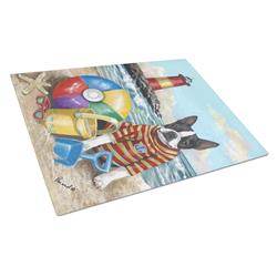 Carolines Treasures PPP3032LCB Boston Terrier Beach Baby Glass Cutting Board - Large