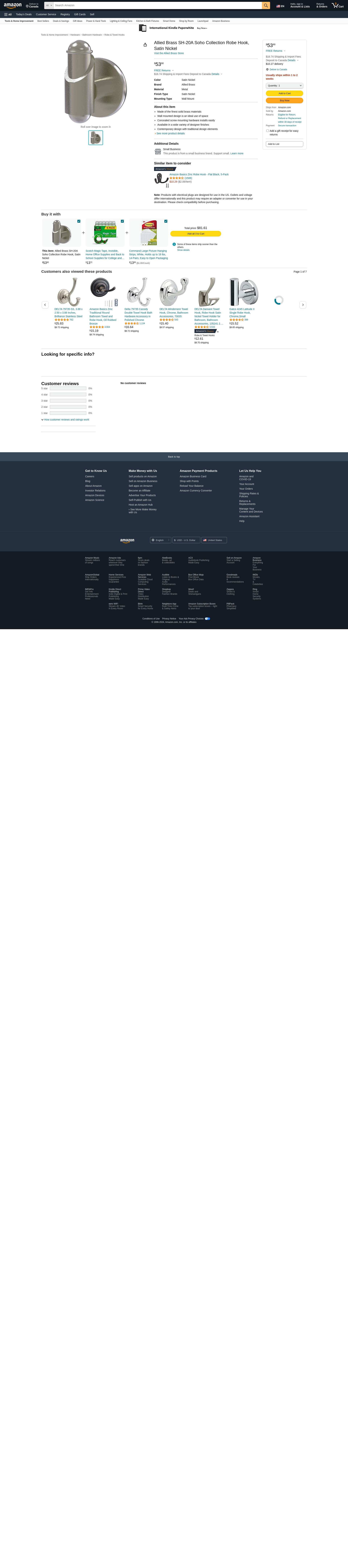 Allied Brass SH-20A Soho Collection Robe Hook, Satin Nickel