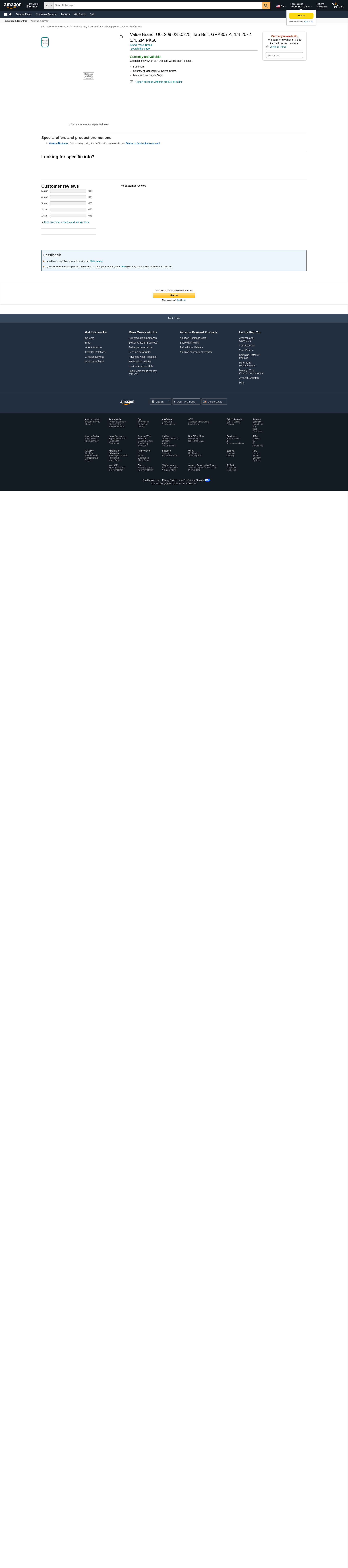 Value Brand, U01209.025.0275, Tap Bolt, GRA307 A, 1/4-20x2-3/4, ZP, PK50
