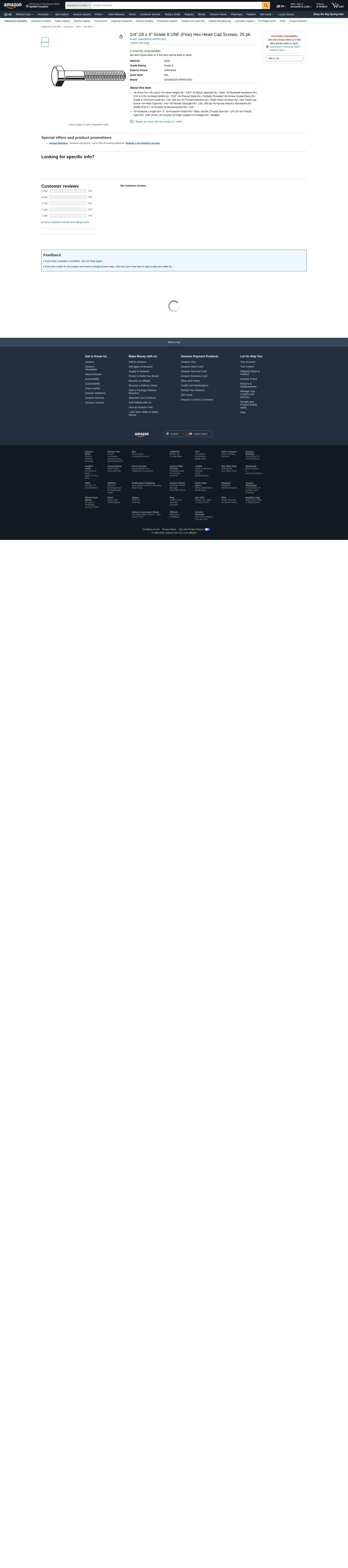 - <b>Fastener Length</b>: 4" <b>Fastener Finish</b>: Plain <b>Dia./Thread Size</b>: 1/4"-28 <b>Thread Type</b>: UNF (Fine) <b>Country of Origin (subject to change)</b>: Multiple