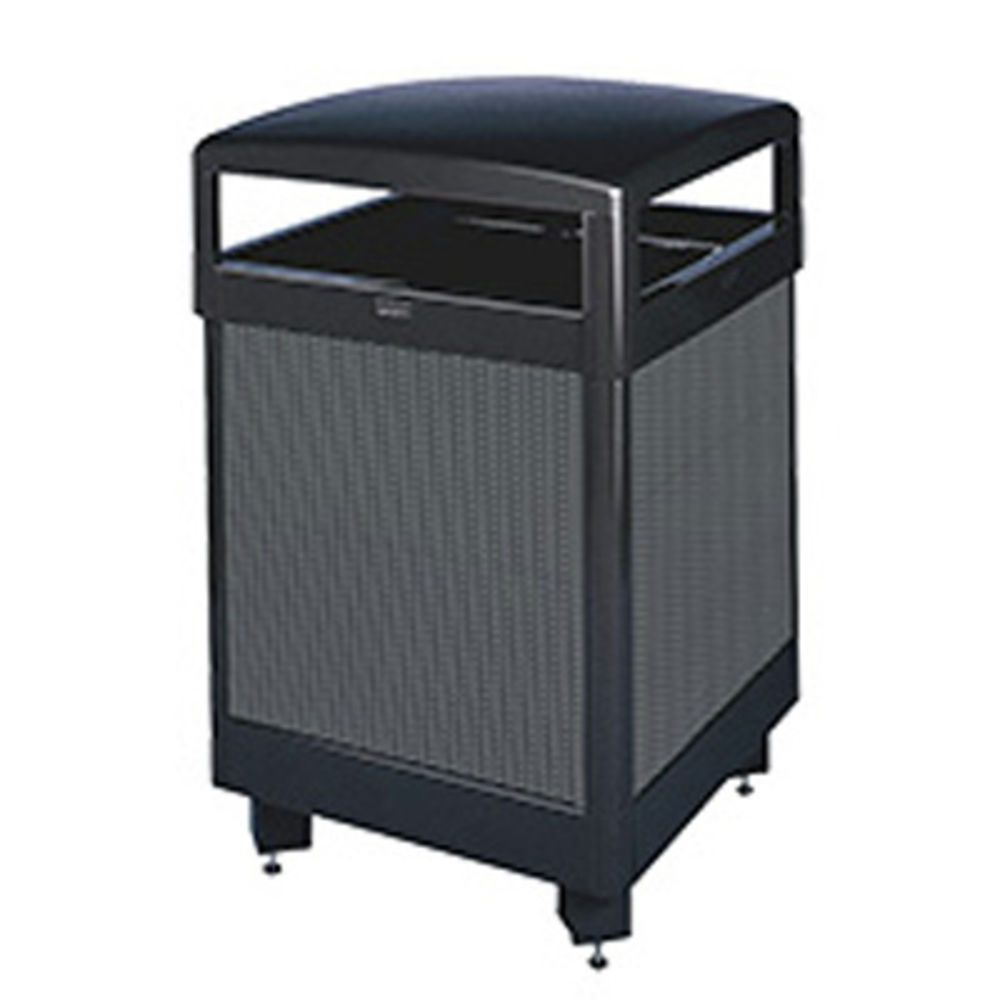 Rubbermaid FGR48HT500PL Dimension 500 Series Hinged-Top Black with Anthracite Perforated Steel Panels Square Steel Waste Receptacle with Rigid Plastic Liner 48 Gallon