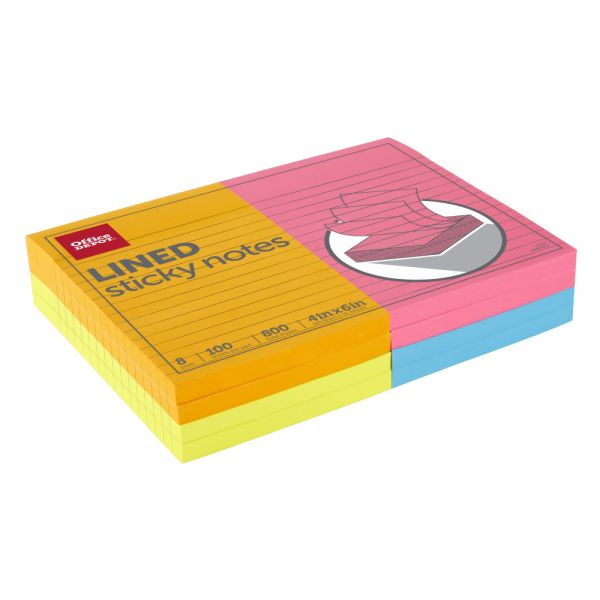 Sticky Notes, 4" X 6", Assorted Vivid Colors, 100 Sheets Per Pad, Pack Of 8 Pads