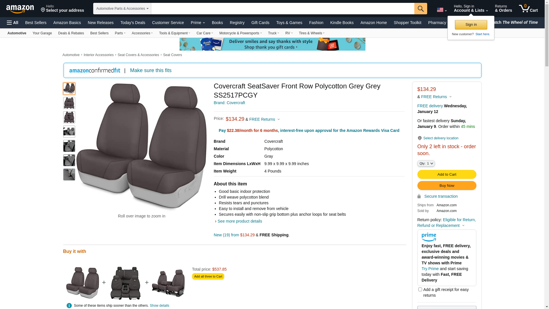 COVERCRAFT SeatSaver Front Row Polycotton Grey Grey SS2517PCGY