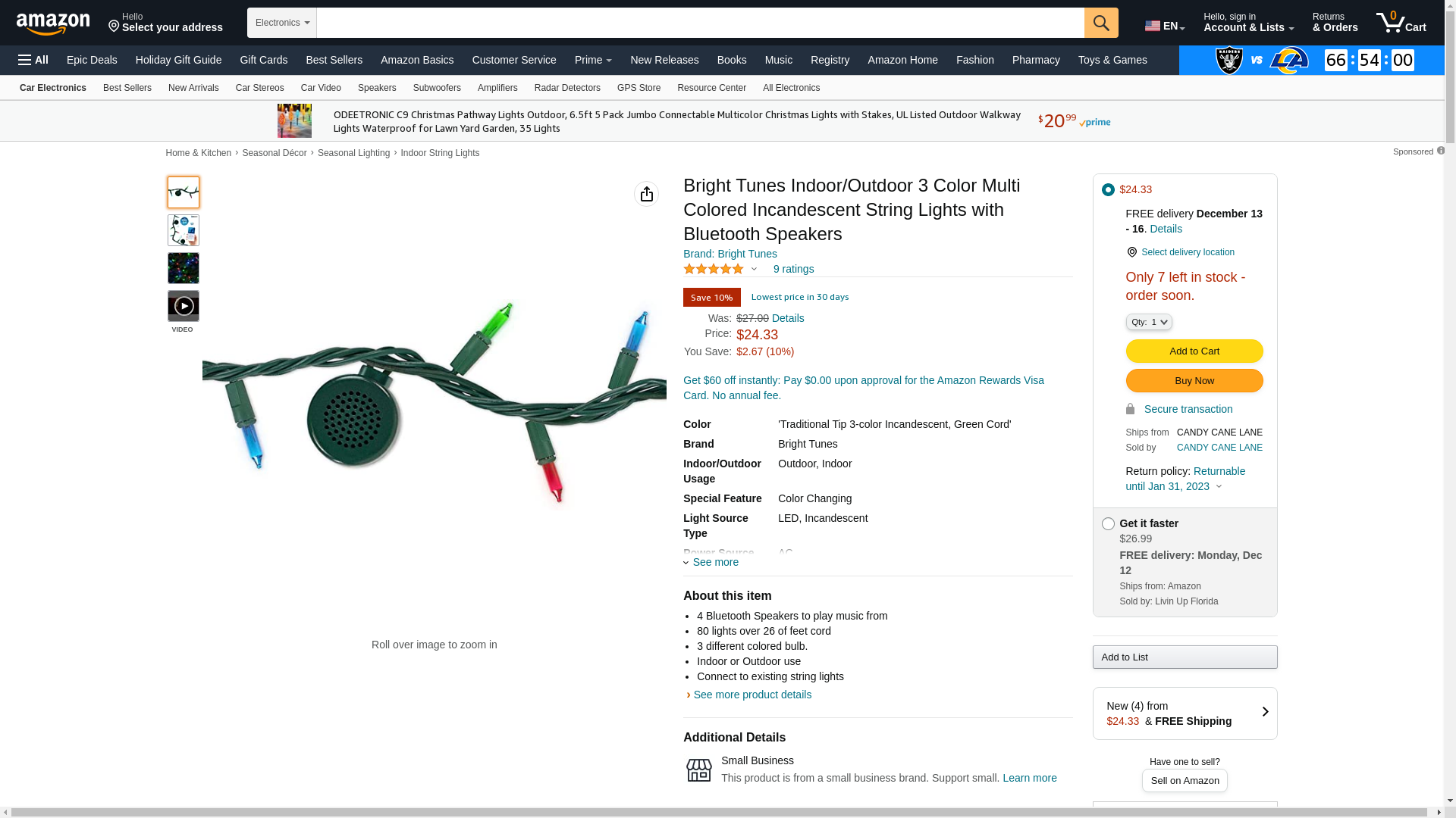 Bright Tunes Incandescent String Lights with Four Bluetooth Speakers Multi-colored Bulbs, Green Cord BRT-200-GI - Best Buy