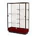 - Wooden display cases on a 10" high base include sliding tempered glass doors, built-in locks, steel shelving hardware, and levelers.
