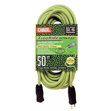 Ultra Flex Lighted Extension Cord, Outdoor, 14 AWG, 3-Conductor Grounded, 50', Green CPE Jacket, 125 Volts, 15 Amps, 1875 Watts, NEMA 5-15P/5-15R, Straight Plug, Type SJOW, UL Listed, Made in the USA