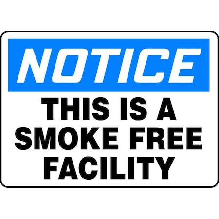 Accuform MSMK849VA Aluminum Safety Sign, Legend "Notice This is A Smoke Free Facility", 10" Length x 14" Width, Blue/Black on White