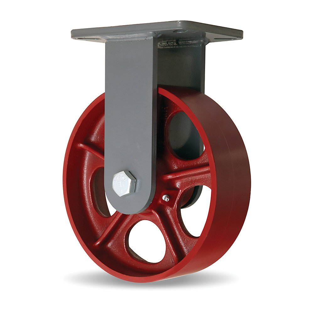HAMILTON Champion Casters offer superior performance and reliable service. A variety of wheel types to meet your needs. Features a 1" integrally-forged steel kingpin that is extremely durable and strong. -1/2" thick drop forged steel mounting plate with -3/8x3" plate steel legs are welded inside and outside to forged steel horn base. CNC-machined main load bearingA with 3-3/4" diameter raceway; 1" precision tapered thrust secondary load bearing counteracts radial thrust. Ball-check type lubrication fittings in swivel assembly and in wheel hubs with tapered or straight roller bearings.