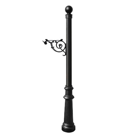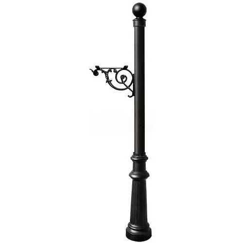 Lewiston Post with Support Brace, Decorative Fluted Base & Ball Finial, (No Mailbox), Black