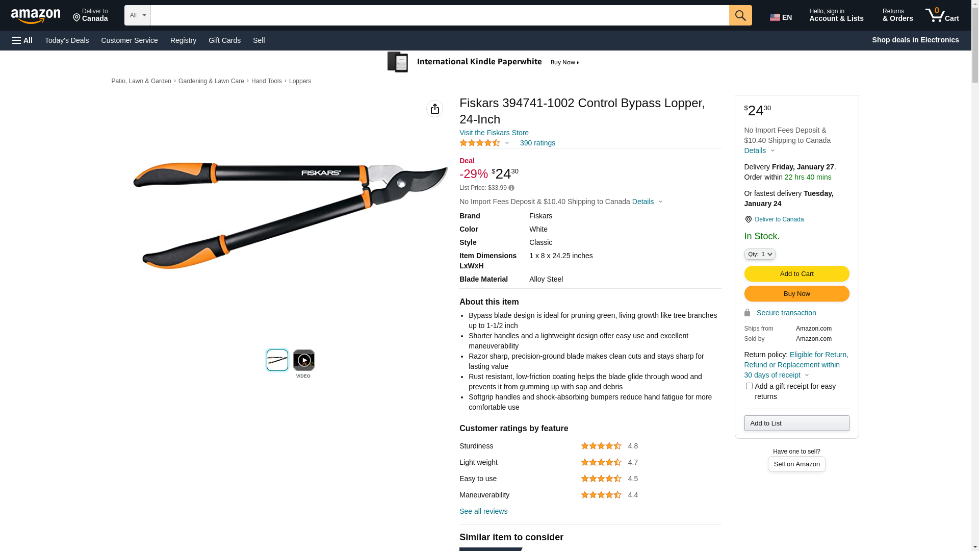 Fiskars 394741-1002 Control Bypass Lopper, 24-Inch