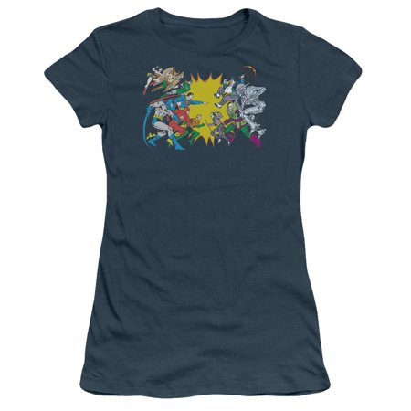 Trevco Dc-Face Off - Short Sleeve Junior Sheer Tee - Indigo, Medium