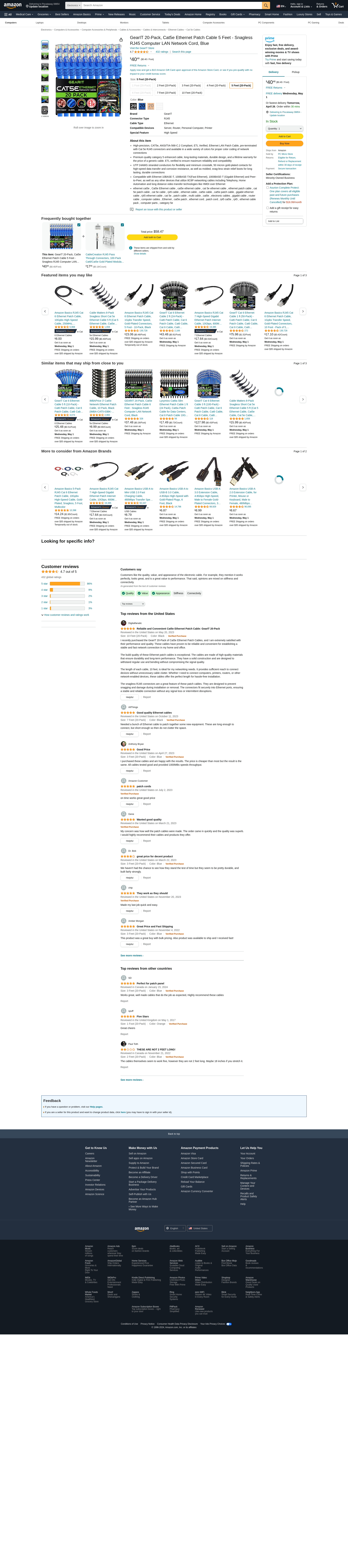 GearIT 20-Pack, Cat5e Ethernet Patch Cable 5 Feet - Snagless RJ45 Computer LAN Network Cord, Blue: Maxedbuy.com