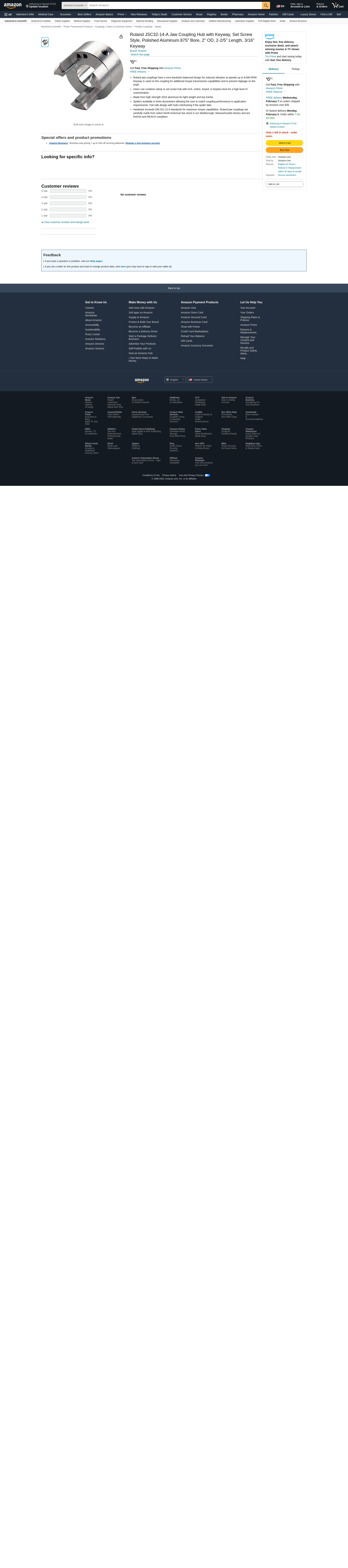 Jaw Coupling Hub, Coupling Size JS32, Outside Diameter 2 in, Coupling Overall Length 2 13/32 in, System of Measurement Inch, Hub Material Aluminum, Maximum Speed 8,000 RPM, Keyway Depth 3/32 in, Keyway Width 3/16 in, Bore Diameter 7/8 in, Shaft Locking Type Set Screw, Bore Type Round Bore with Keyway, Jaw Profile Curved, Screw Thread Size M6, Bore Tolerance +0.002/-0.000 in, Fail Safe Yes, Shaft Tolerance +0.0000/-0.0005 in, Full Bearing Support Required Yes, Hub Diameter 2 in