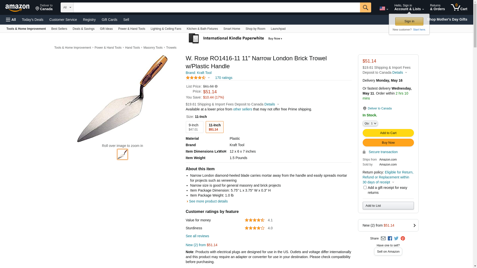 W. Rose 11 Narrow London Brick Trowel with Plastic Handle Features: W. Rose Brick Trowel Each blade is hand polished for comfort and flexibility Diamond heel blade is perfect for brick and general masonry