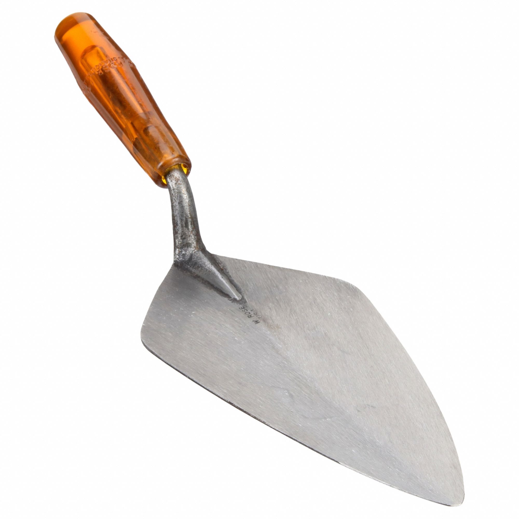 | Feature | Price For: Each Handle Length (In.): 5-1/4 Application: For General Masonry and Brick Work Handle Dia. (In.): 1-21/64 Handle: Plastic Width (In.): 4-3/4 Pattern: Narrow London Material: Forged Steel Length (In.): 11 Item: Brick Trowel Country of Origin (subject to change): United States |