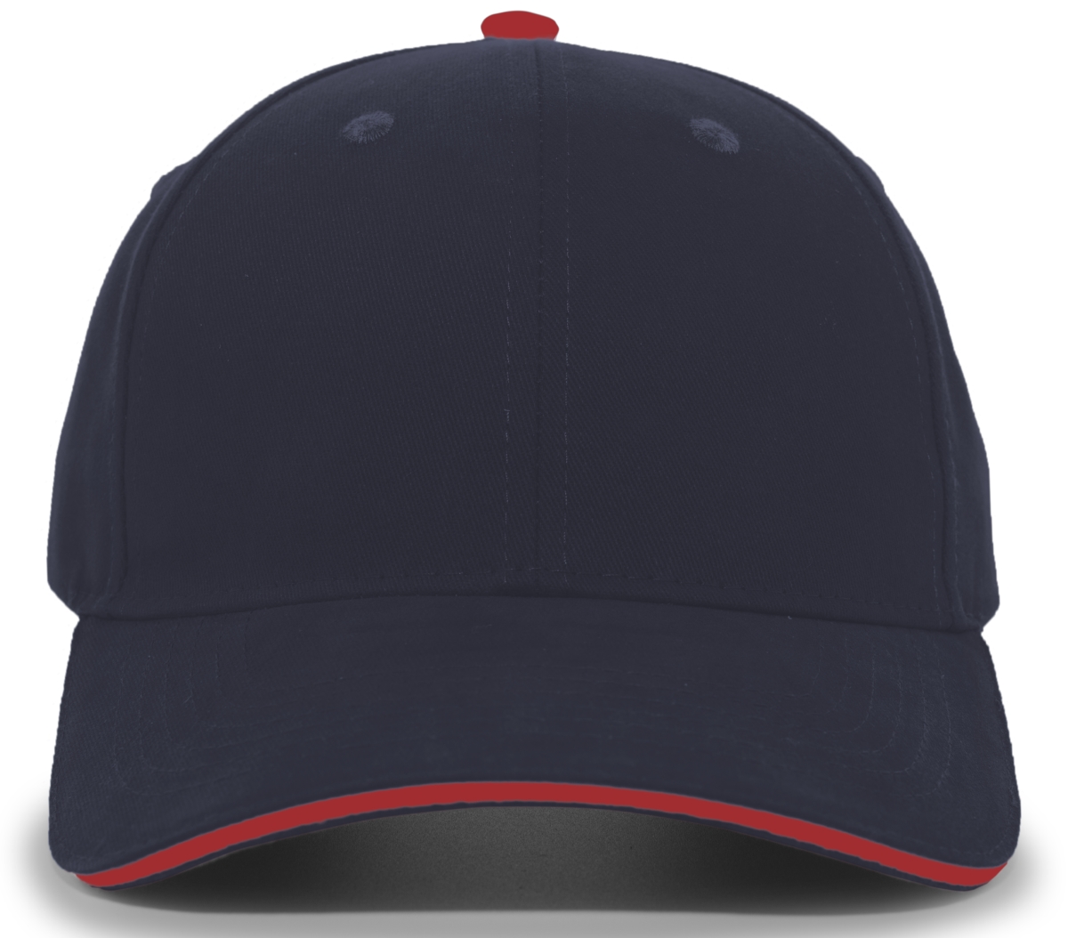 Pacific Headwear 121C.307.OS Brushed Twill Cap with Sandwich Bill, Navy & Red - One Size