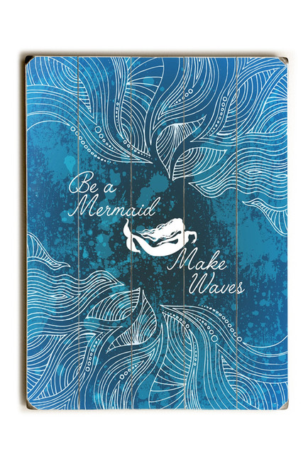 One Bella Casa 82387PW1420 14 x 20 in. Make Waves Dark Blue Planked Wood Wall Decor