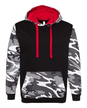 Code Five B12438506 Fashion Camo Hooded Sweatshirt, Black, Urban Woodland & Red - Extra Large
