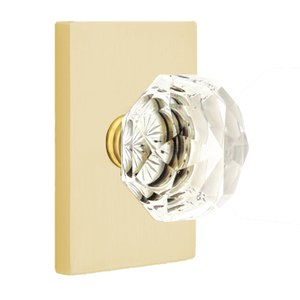 Crystal Door Hardware Collection - Diamond Privacy Door Knob with Modern Rectangular Rose in Satin Brass by Emtek Hardware - 5212CKUS4234 | MyKnobs