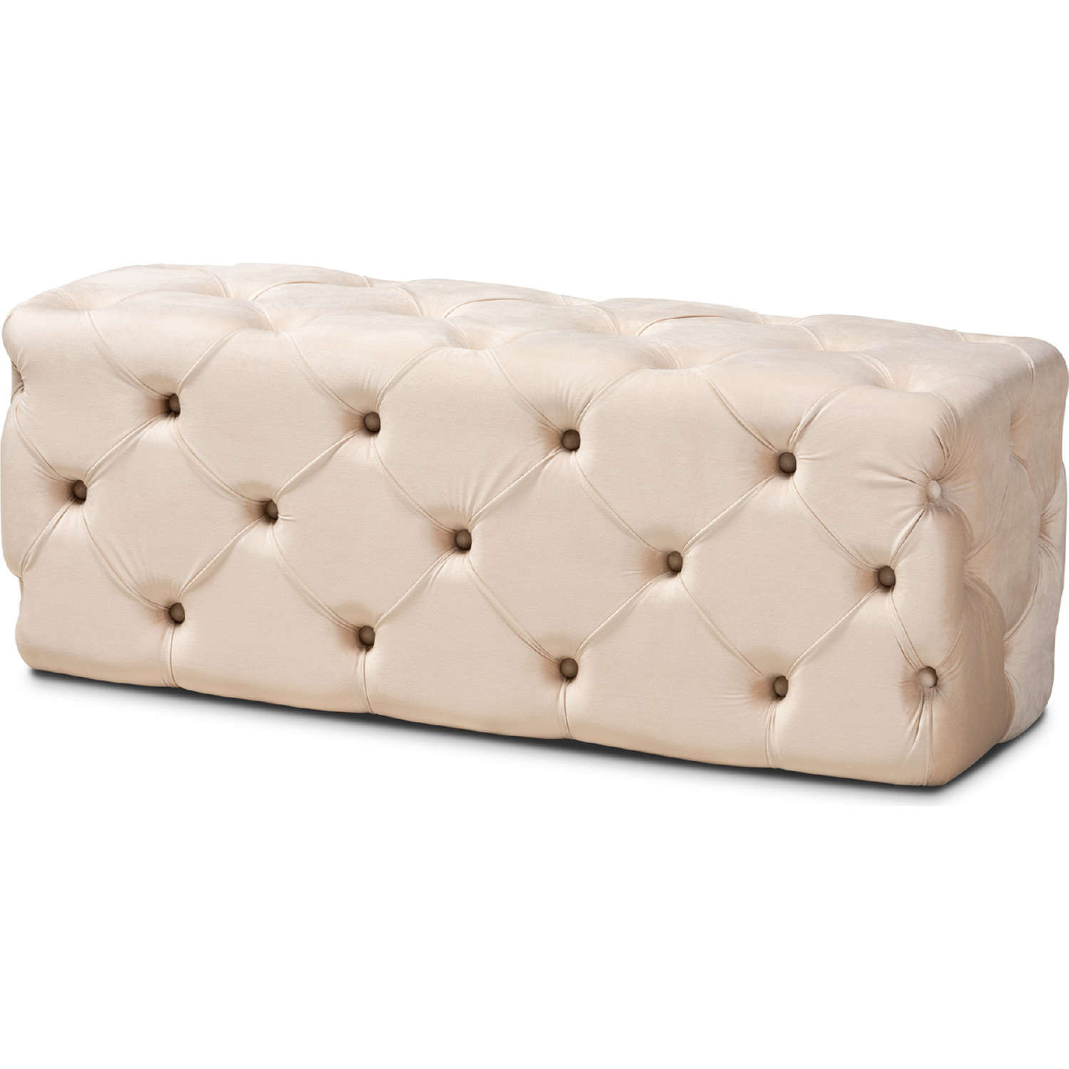 Baxton LD19A119-1-Beige Velvet-Otto Jasmine Ottoman in Tufted Beige Velvet