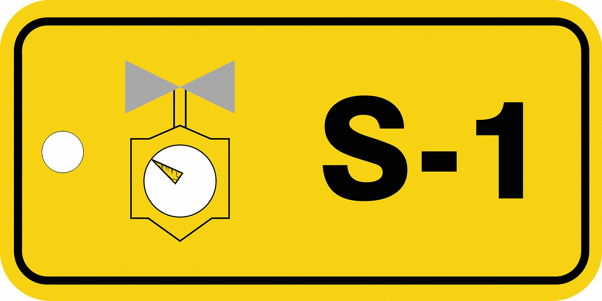 Accuform TDJ301VPE Plastic"S-1 Steam" Energy Source Standard Tag, 1-1/2" W x 3" L, Black/Gray/Red/White on Yellow