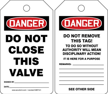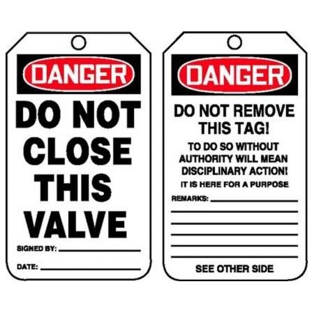 Order MDT121CTP by Accuform PF-Cardstock Safety Tag "Do Not Close This Valve" - US Mega Store