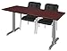 Regency Via Training Table Set with two Uptown Chairs, 72" x 24", Mahogany/Grey