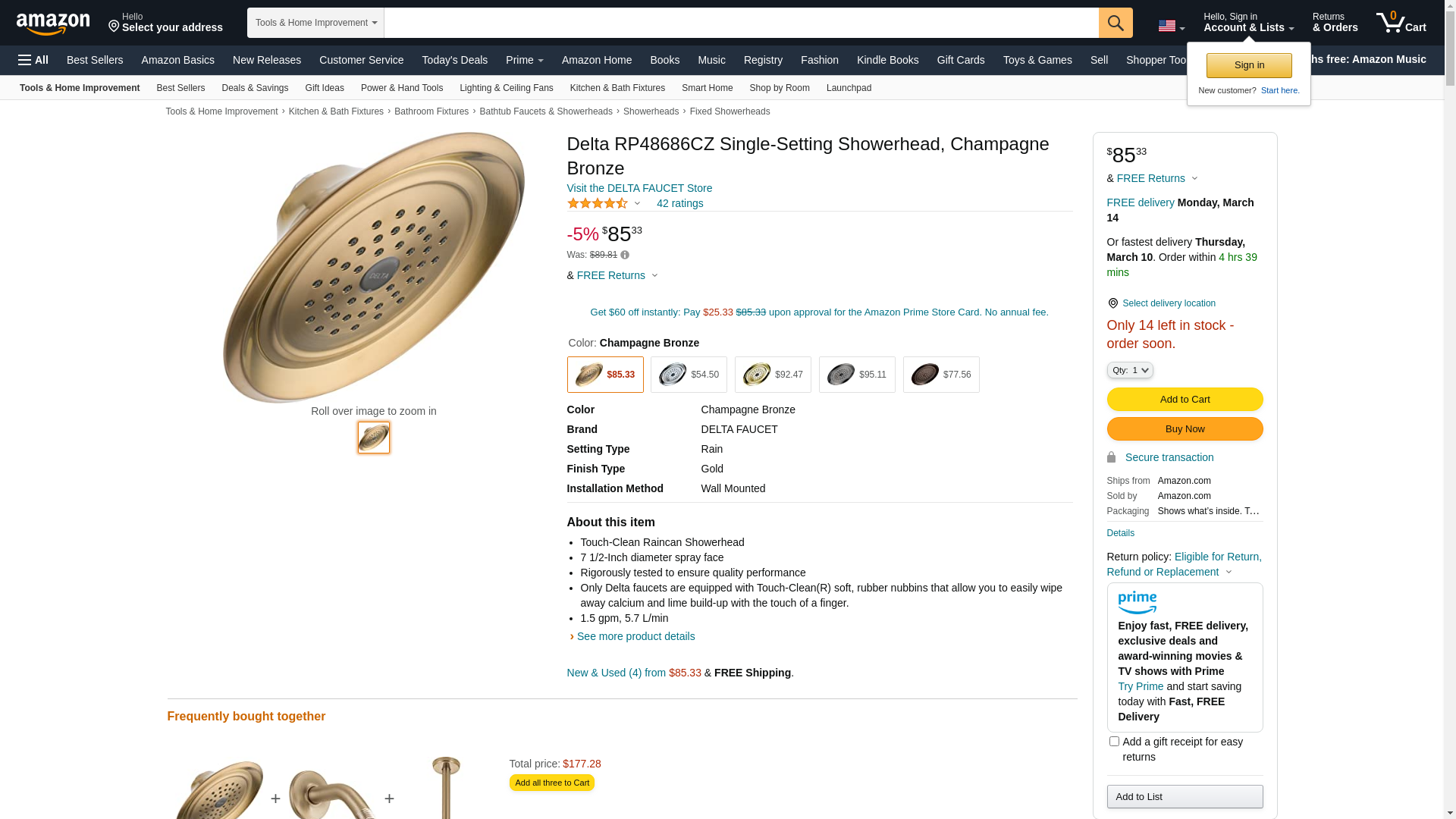 Delta Faucet RP48686CZ Single-Setting Showerhead, Champagne Bronze