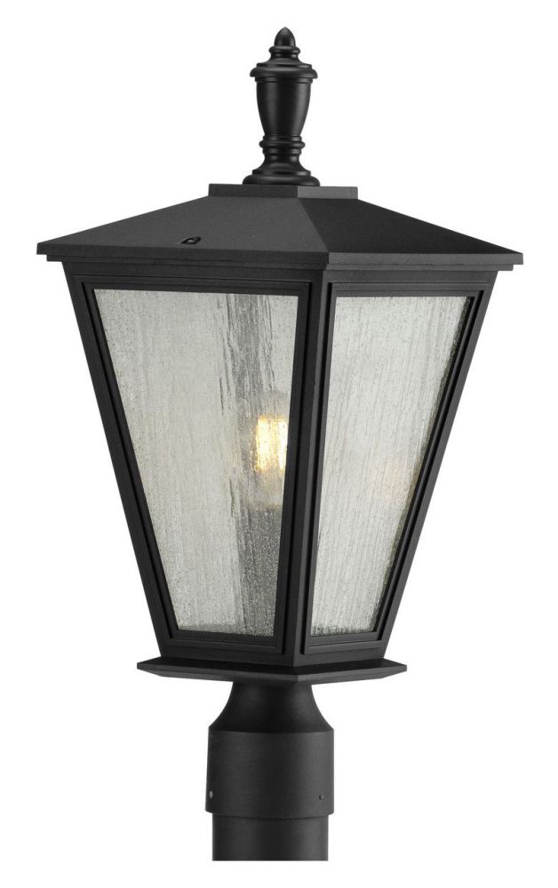 Progress Lighting Cardiff Collection 1-Light Clear Seeded Glass New Traditional Outdoor Post Lantern Light Textured Black