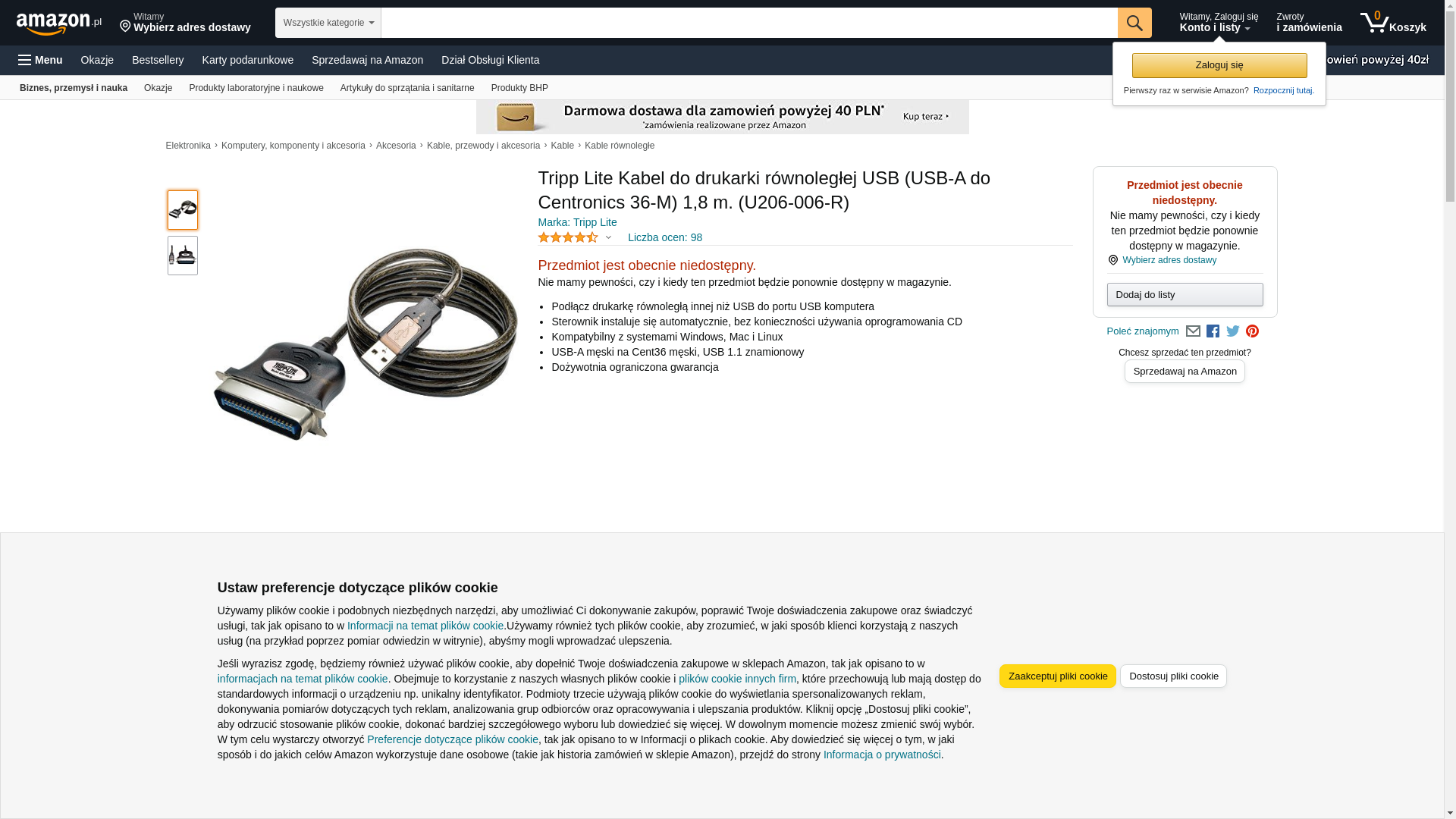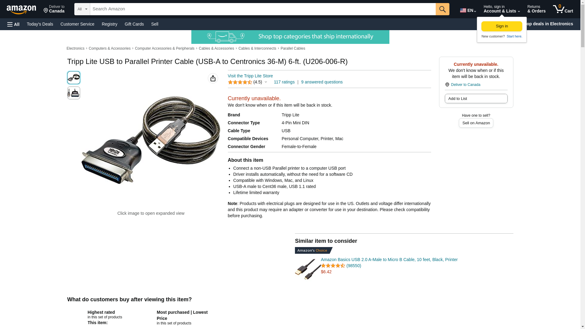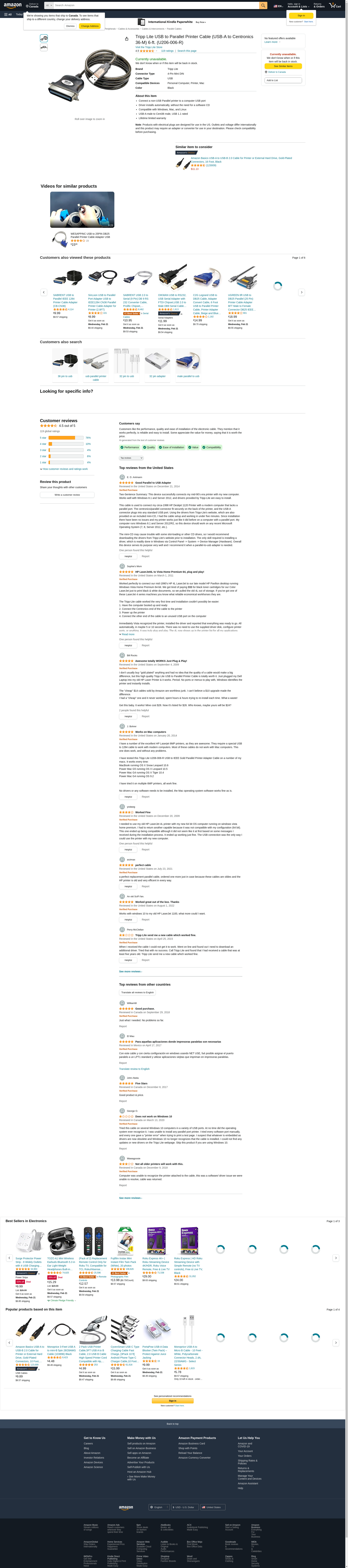 Amazon.com: Tripp Lite USB to Parallel Printer Cable (USB-A to Centronics 36-M) 6-ft. (U206-006-R) : Electronics