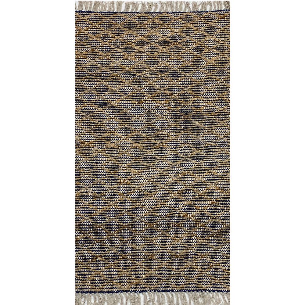 LR Home RUGSA99656IND2339 2 ft. 3 in. x 3 ft. 9 in. Natural Criss-Cross Fringed Area Rug, Tan & Blue