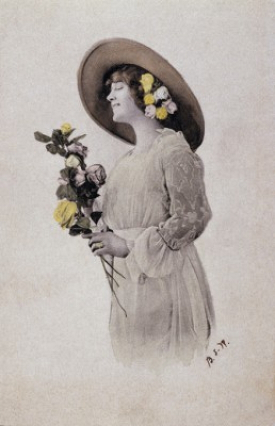 Posterazzi SAL9801324 Portrait of a Woman with a Bouquet Nostalgia Cards Poster Print - 18 x 24 in.