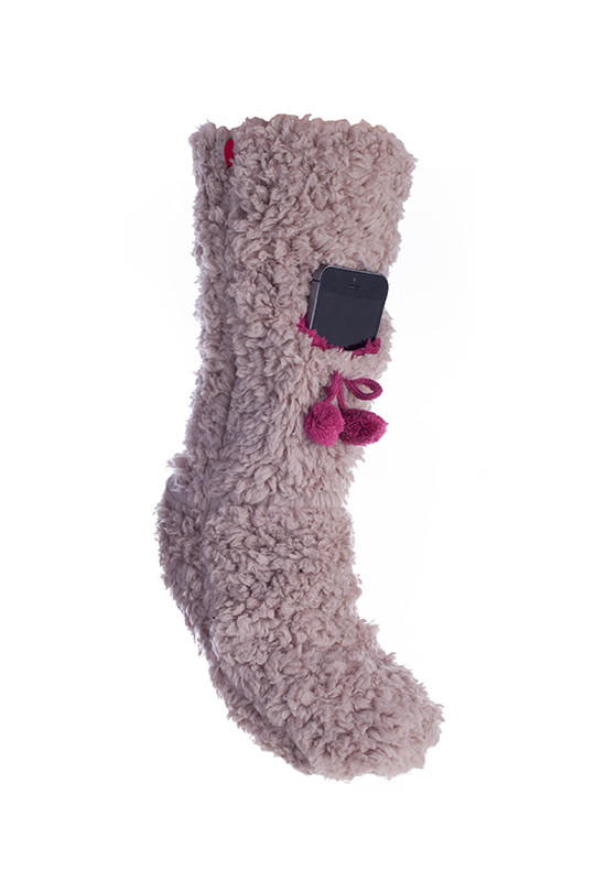 Minx NY VHT10450.TPE-M Lavender Infused Slipper Socks With Cell Phone, Taupe - Medium