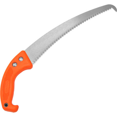 Our hand saws are equipped with Barracuda saw blades featuring impulse hardened tri-cut teeth. This design provides an efficient and clean cut that is preferred by professional arborists. An ergonomic soft grip handle provides an index finger stop for safety and opening for lanyard line. Includes one 13-in. hand saw with hook blade and orange handle.