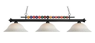 Z-Lite 170MB-WM16 Shark Three Light Billiard, Metal Frame, Matte Black Finish and White Mottle Shade of Glass Material