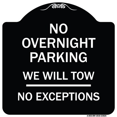 No Overnight Parking We Will Tow No Exceptions Heavy-Gauge Aluminum Architectural Sign