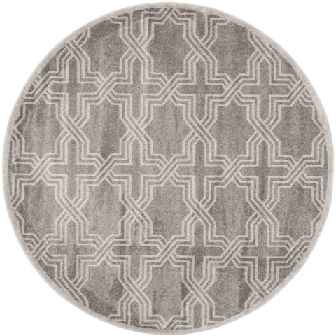 SAFAVIEH Amherst Collection Area Rug - 7' Round, Grey & Light Grey, Geometric Design, Non-Shedding & Easy Care, Ideal for High Traffic Areas in Living Room, Bedroom (AMT413C)