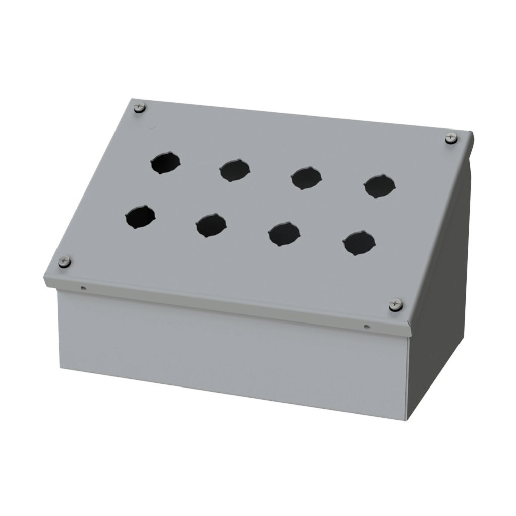 SCE-8PBAI | 7x11x7" Metal Pushbutton Enclosure with 8 Holes, 22.5 mm | Saginaw Control & Engineering