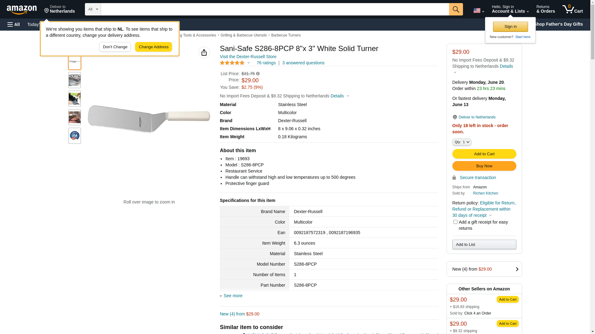 - Dexter Russell S286-8C-PCP Sani-Safe (19693C) Cake Turner, 8" x 3", solid, stainless steel, offset blade, textured, polypropylene blue handle, Perfect Cutlery Packaging, NSF Certified, Made in USA