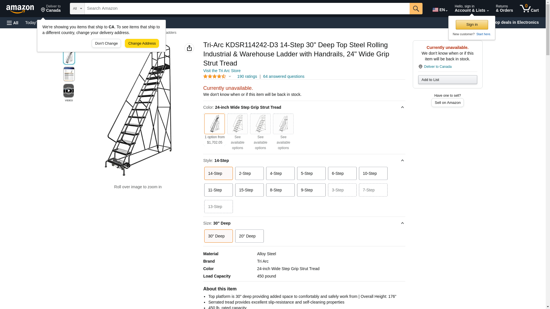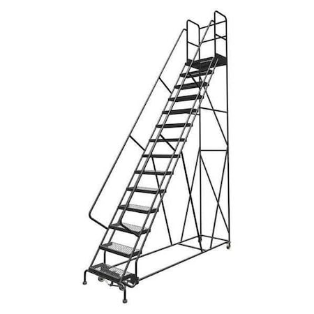 Tri-Arc KDSR114242-D3 14-Step 30" Deep Top Steel Rolling Industrial & Warehouse Ladder with Handrails, 24" Wide Grip Strut Tread
