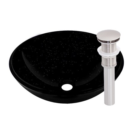 - Solid black with sparkles glass vessel sink with brushed nickel hardware