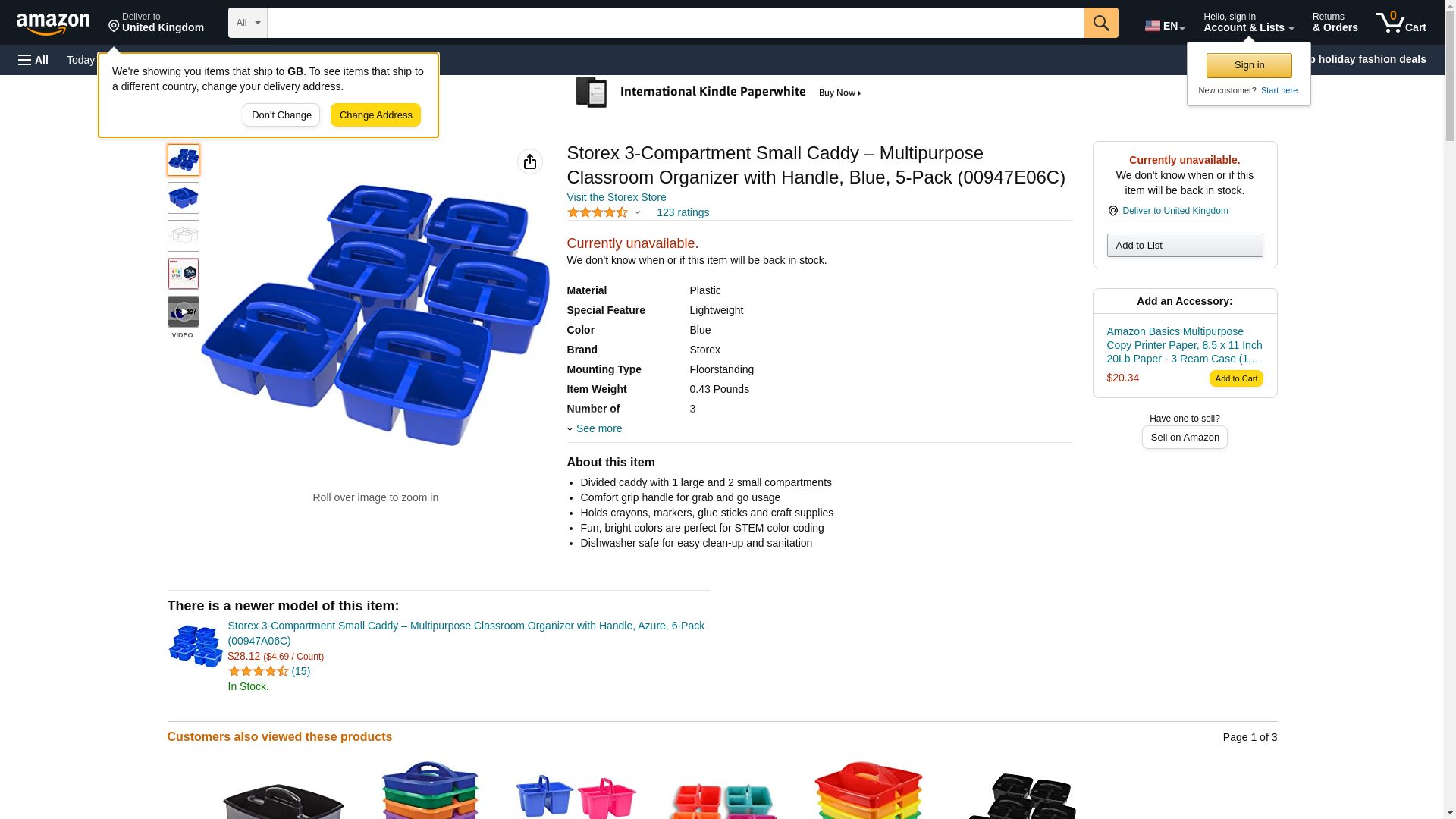 | Feature | Caddy features 3 compartments - 1 large and 2 small; Blue |