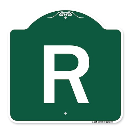 Designer Series Sign-Sign with Letter R, Green & White Aluminum Architectural Sign