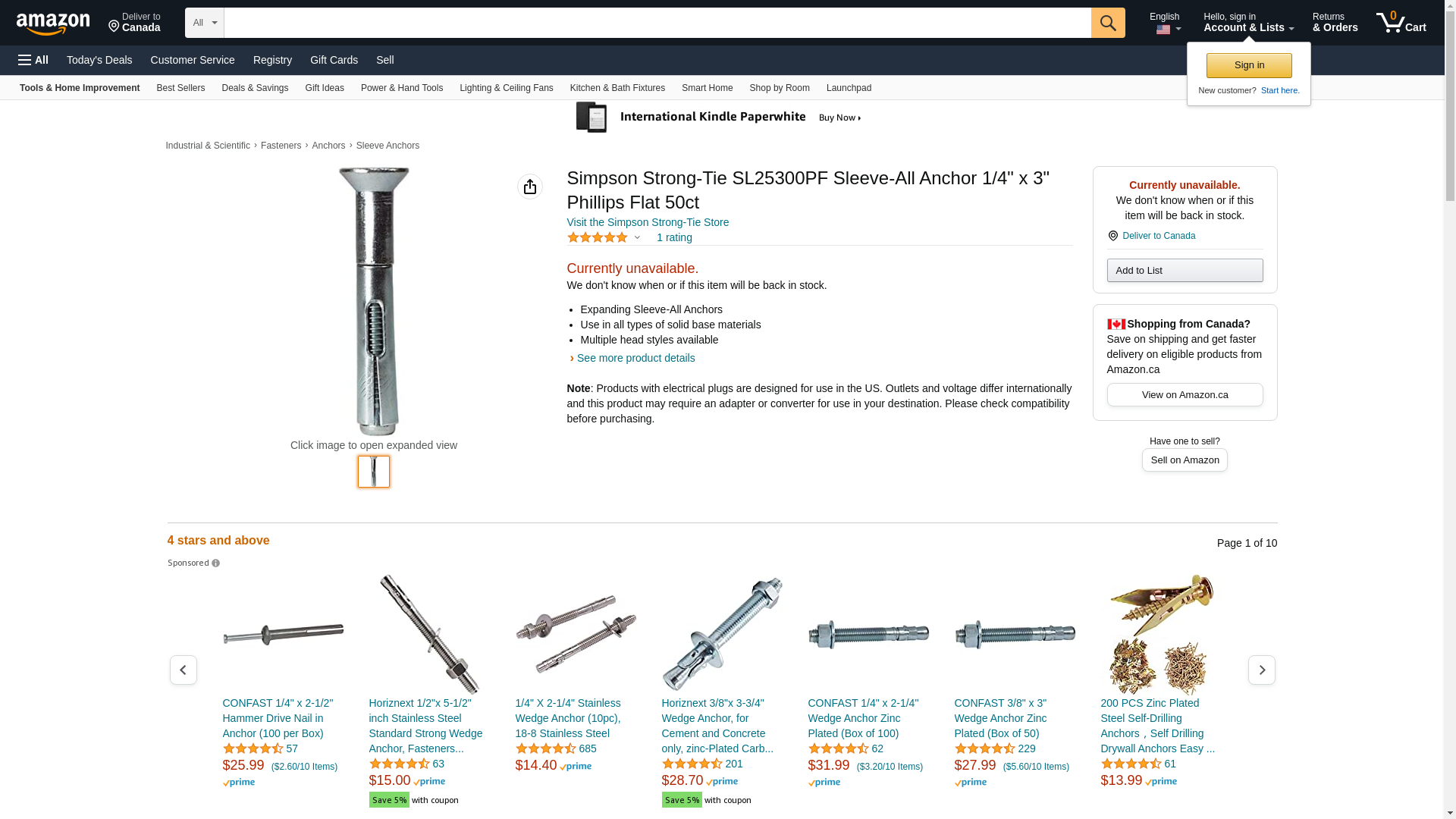 Simpson Strong Tie SL25300PF 1/4-Inch by 1-3/8-Inch Sleeve-All Anchor with Acorn Head 3/16-Inch Bolt Diameter, 100 Per Box