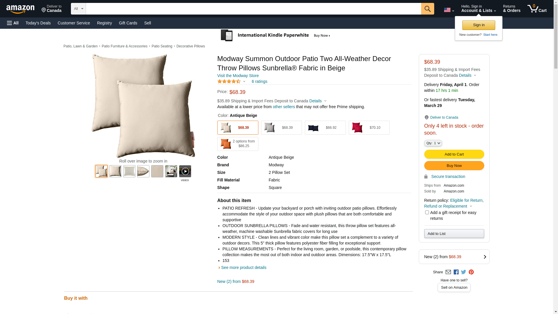 Modway Summon Outdoor Patio Two All-Weather Decor Throw Pillows Sunbrella® Fabric in Beige