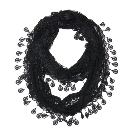 Falari Women Lace Infinity Loop Scarf With Fringes Polyester (Style 3 - Black)