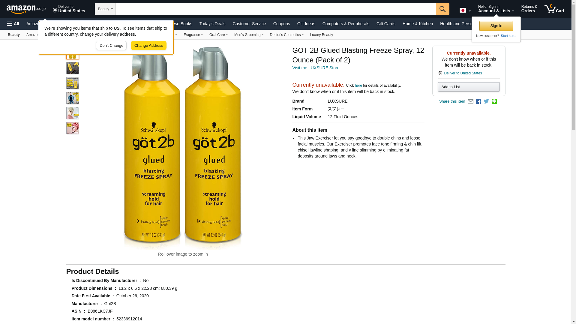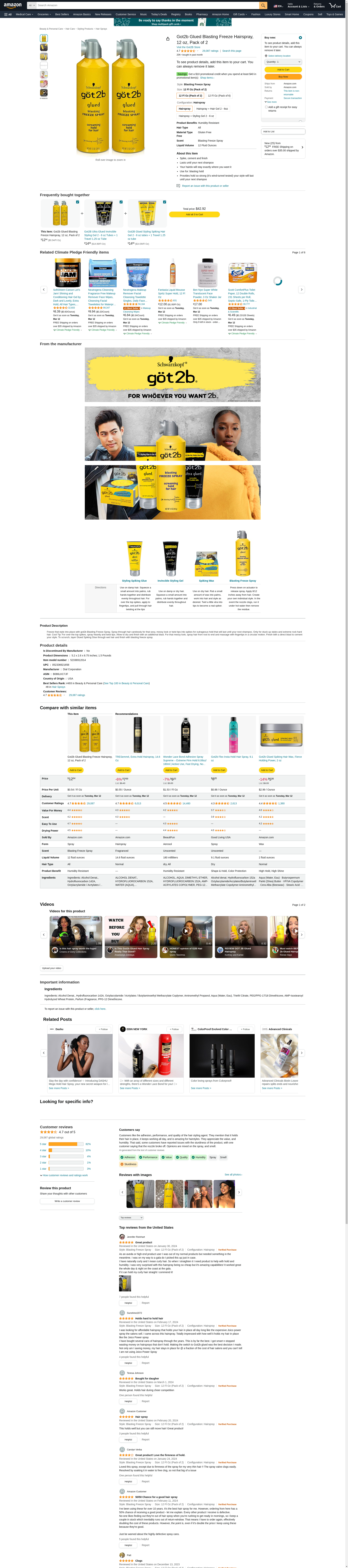 Got2b Glued Blasting Freeze Hairspray, 12 oz, Pack of 2