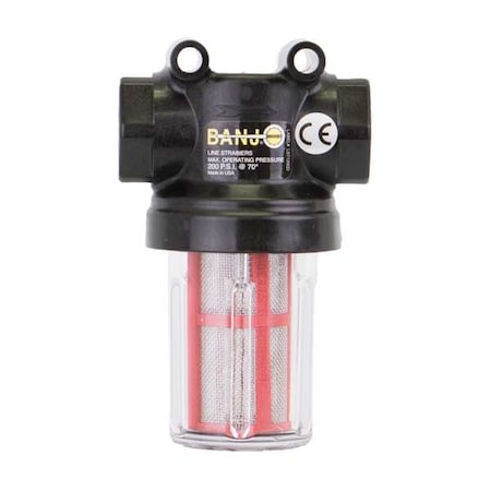 | Feature | <b>Price For:</b> Each <b>Housing Material</b>: Polypropylene <b>Screen Material</b>: 316 Stainless Steel <b>Max. Fluid Temp.</b>: 150 Degrees F <b>Connection Type</b>: FNPT <b>Color</b>: Clear <b>Bowl Color</b>: Clear <b>Item</b>: Mini T-Line Strainer <b>Microns</b>: 595 <b>Mesh</b>: 30 <b>Max. Pressure</b>: 100 psi @ 70 Degrees F <b>Pipe Size</b>: 3/4" <b>Gasket Material</b>: EPDM <b>Length</b>: 3-5/8" <b>Height</b>: 4-3/16" <b>Flow Rate</b>: 30 |