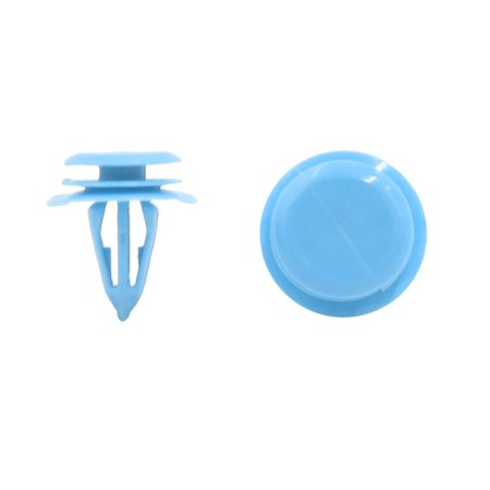 <li>Interchange Part Number: Under Engine Splash Guard Rivet Fastener Clips;Manufacturer Part Number: Plastic Push-Type Bumper Retainer Clip;Other Part Number: Screw Fender Body Door Trim Panel Hood</li> <li>Applications1: Defender Door Card Interior Weatherstrip Moulding;Applications2:Carpet Floor Mat Clips</li> <li>Package Content: 100(+/-2%) x Rivet Clips;Fit Hole Size: 9mm/ 0.35";Head Diameter(max.): 17.5mm/ 0.7"</li> <li>Stem Length: 18mm/ 0.7";Total Length: 22mm/ 0.87";Shell Color: Blue</li>